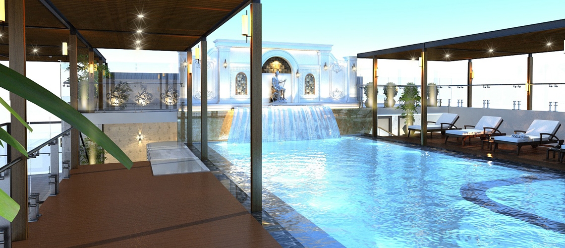 Located on the top floor of MONALISA HOTEL & APARTMENT swimming pool is a place where you can immerse yourself in cool water, sunbathe, swimmers can go ashore based on benches to rest or sunshine with clean towels served Free and enjoy light snacks and attractive drinks served all day.